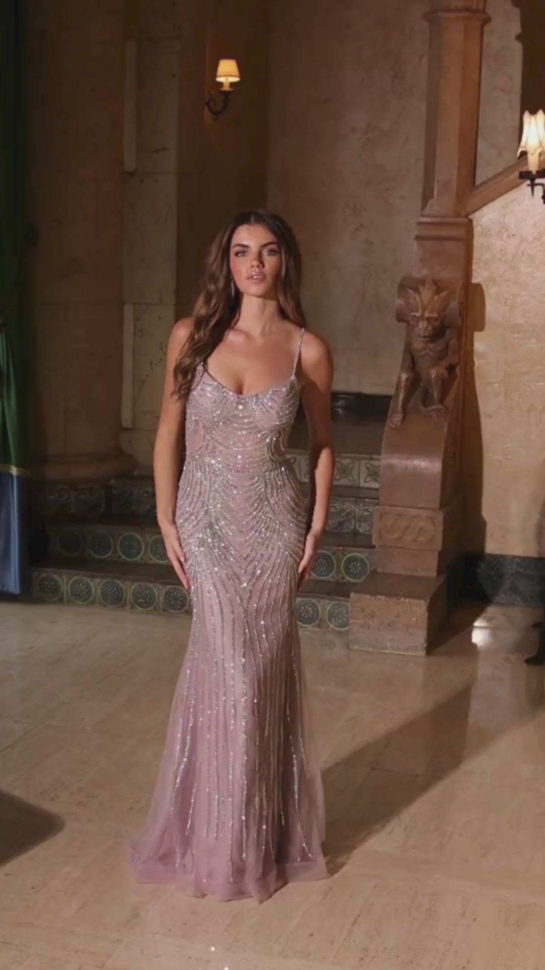 This elegant long tulle dress features shimmering beads that catch the light beautifully. Its delicate spaghetti straps provide a graceful, comfortable fit, combining glamour with sophistication effortlessly.